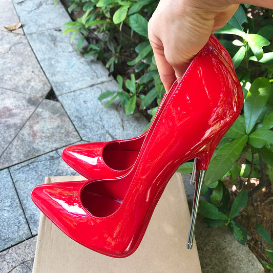 ♥️16cm Extreme Metal Heel Solid Red Stiletto Fetish Model Club Pumps Size 35-46♥️
