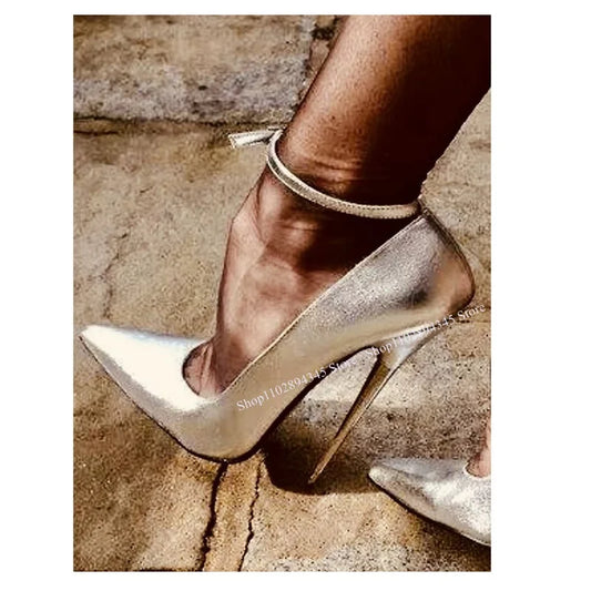 💜Golden Buckle Shallow Thin High Heel Pointed Toe Big Size Sexy Cool Summer Party Pumps💜