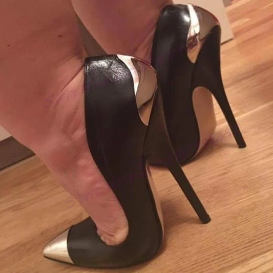 🔥Black Patent Leather Shallow Metal Thin High Heel Pointed Toe Pumps🔥